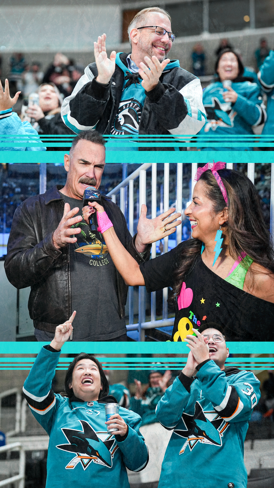 Throughout the season, the Sharks do free giveaway nights where the Sharks designers or artists in San Jose design giveaway items. I designed our fun holiday sweater shirsey giveaway. We ordered around 60,000 of these bad boys to give away to everyone who attended our December 21st game right before the start of the holiday season. Pictured is one of players Tomas Hertl modeling the shirsey and various shots of fans throughout the night!